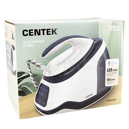 Парогенератор CT-2304 обеспечивает простое и эффективное глажение: большое количество пара разглаживает жесткие складки, подошва превосходно скользит на любых тканях.