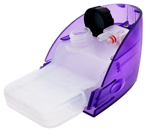 У пароочистителя есть резервуар для моющего средства, который просто наполняется любым жидким очистителем. Резервуар съёмный и легко моется после работы пароочистителя.