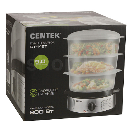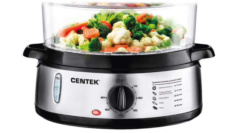 Пароварка Centek CT-1457 мощностью 800 Вт станет настоящей находкой для поклонников правильного питания или для молодых мам, которые готовят полезный прикорм ребенку.