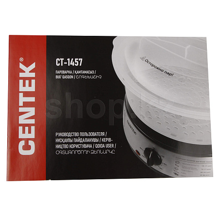 Модель имеет механическое управление и съемные решетки. Пароварка Centek CT-1457 оснащена опциями выключения при окончании воды, а также возможностью доливания жидкости в процессе работы.