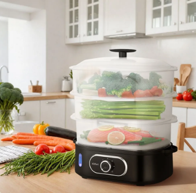Продукты, приготовленные в пароварке КТ-6301, получаются нежными, мягкими и сочными. В пароварке можно легко готовить мясо, рыбу, овощи. Прибор оснащен тремя паровыми корзинами, что позволит приготовить обед или ужин из нескольких блюд сразу на всю семью.