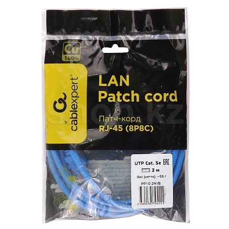 Patch cord RJ-45 5е cat Cablexpert PP10-2M/B, UTP, 2m, Blue