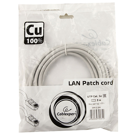 Patch cord RJ-45 5е cat Cablexpert PP10-3M, UTP, 3m, Gray
