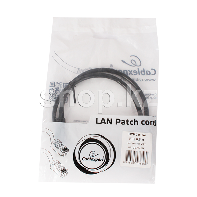 Patch cord RJ-45 5е cat Cablexpert PP12-0.5M/BK, UTP, 0.5m, Black