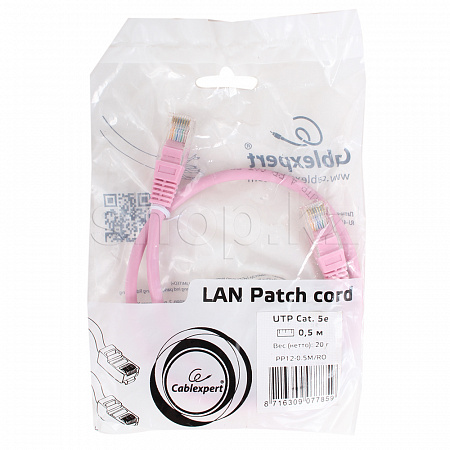 Patch cord RJ-45 5е cat Cablexpert PP12-0.5M/RO, UTP, 0.5m, Pink