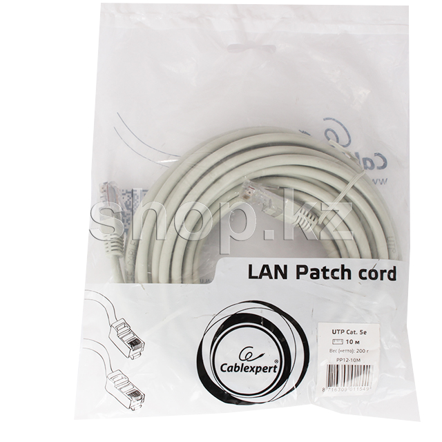 Patch cord RJ-45 5е cat Cablexpert PP12-10M, UTP, 10m, Grey