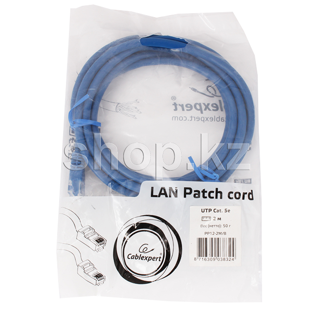 Patch cord RJ-45 5е cat Cablexpert PP12-2M/B, UTP, 2m, Blue