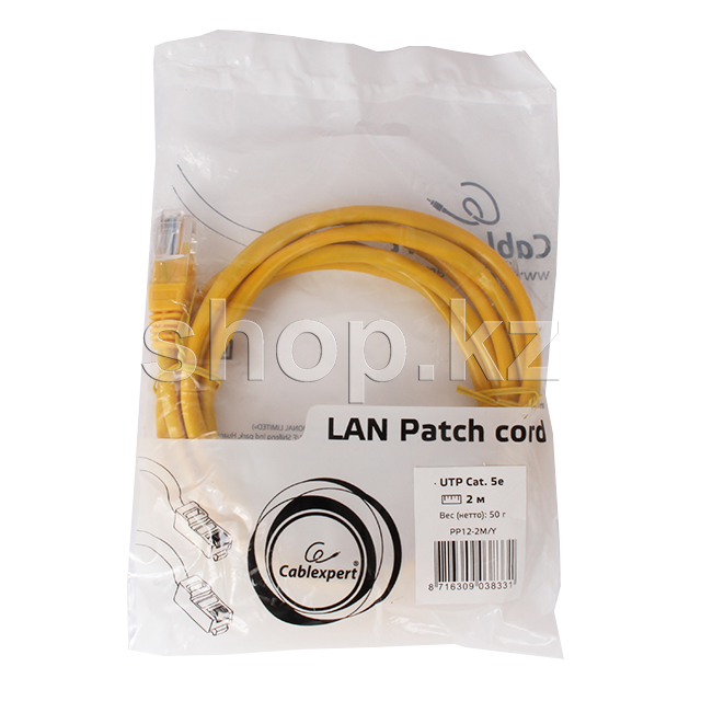 Patch cord RJ-45 5е cat Cablexpert PP12-2M/Y, UTP, 2m, Yellow