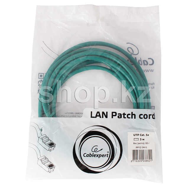 Patch cord RJ-45 5е cat Cablexpert PP12-3M/G, UTP, 3m, Green