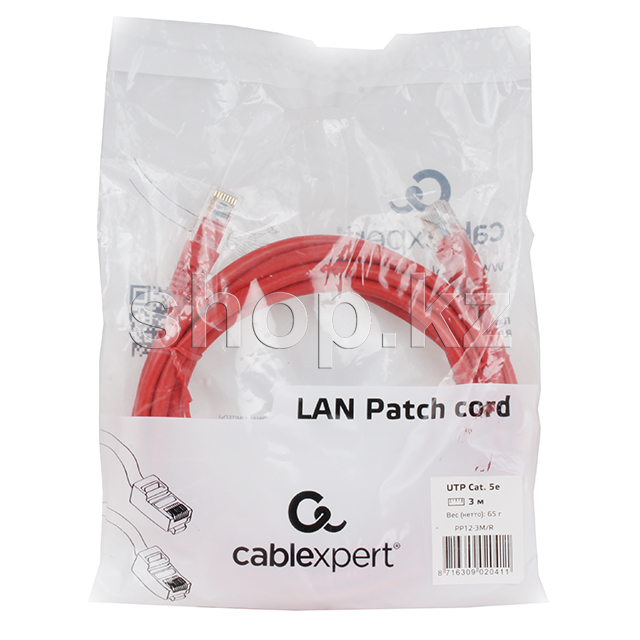 Patch cord RJ-45 5е cat Cablexpert PP12-3M, UTP, 3m, Red