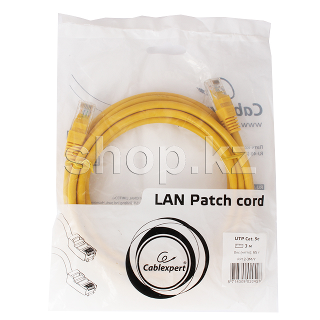 Patch cord RJ-45 5е cat Cablexpert PP12-3M/Y, UTP, 3m, Yellow