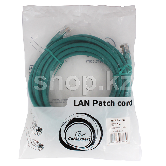Patch cord RJ-45 5е cat Cablexpert PP12-5M/G, UTP, 5m, Green