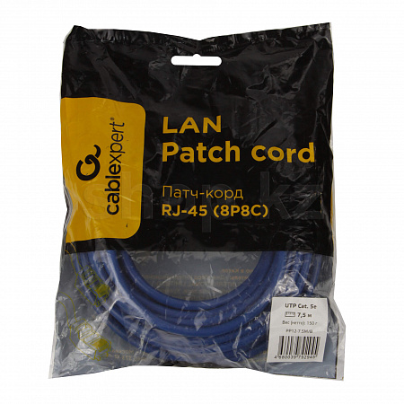 Patch cord RJ-45 5е cat Cablexpert PP12-7.5M/B, UTP, 7.5m, Blue