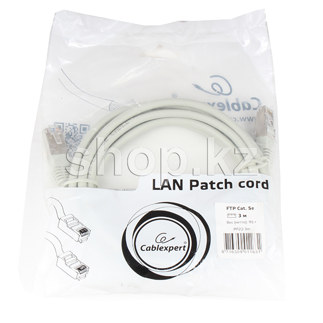 Кабель сетевой FTP Cablexpert PP22-3, серый. Длина кабеля - 3 м. Модель полностью безопасна в использовании. Оболочка сделана из экологичного материала, которая, в ходе эксплуатации, защищает конструкцию от влаги и повреждений. В производстве кабелей Cablexpert используются только качественные материалы, поэтому они служат долгие годы.