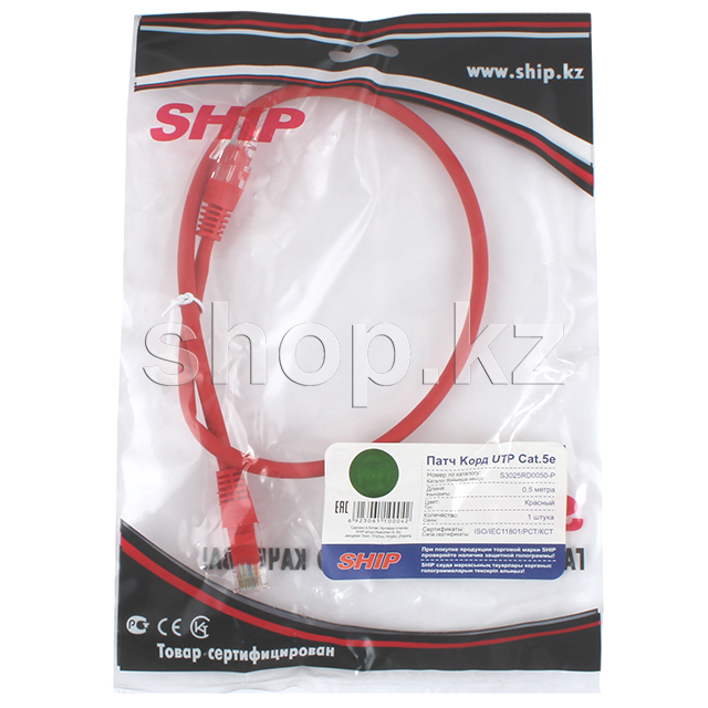 Patch cord RJ-45 5е cat SHIP, 0.5m, OEM, Red