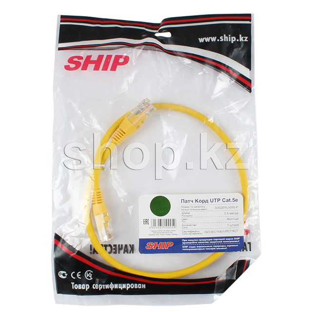 Patch cord RJ-45 5е cat SHIP, 0.5m, OEM, Yellow