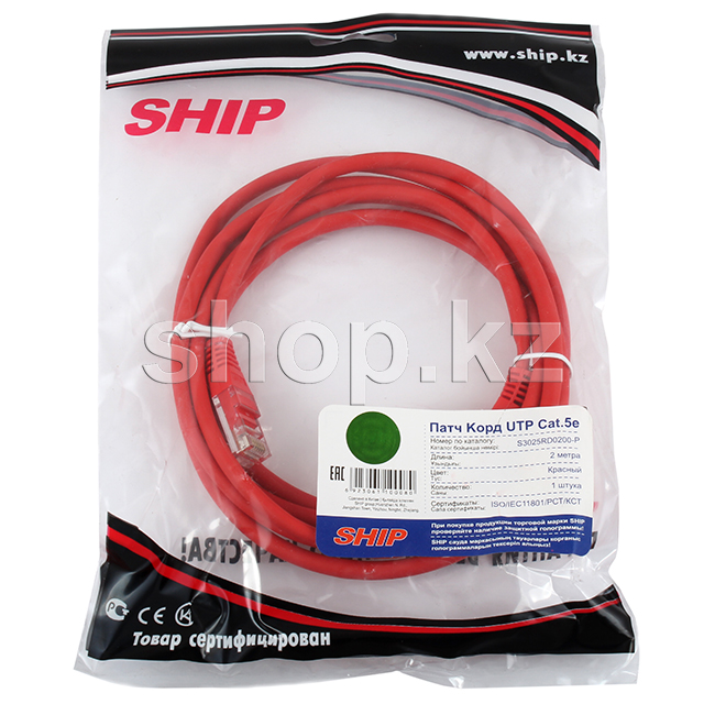 Patch cord RJ-45 5е cat SHIP, 2m, OEM, Red