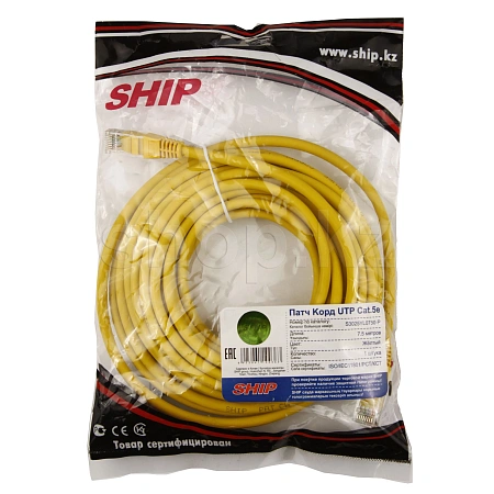 Patch cord RJ-45 5е cat SHIP, 7.5m, OEM, Yellow