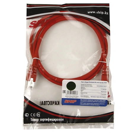 Patch cord RJ-45 5е cat SHIP, FTP, 1.5m, OEM, Red