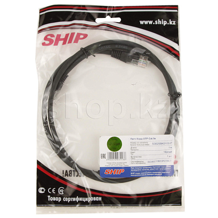 Patch cord RJ-45 5е cat SHIP, UTP, 1m, OEM, Black