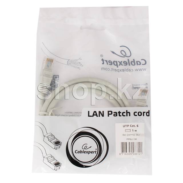 Patch cord RJ-45 6 cat Cablexpert PP6U-1M, UTP, 1m, Grey