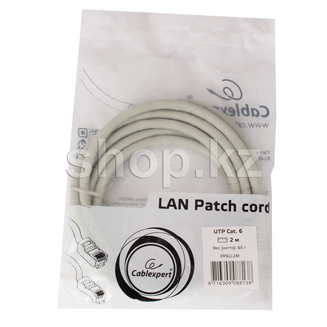 Patch cord RJ-45 6 cat Cablexpert PP6U-2M, UTP, 2m, Grey