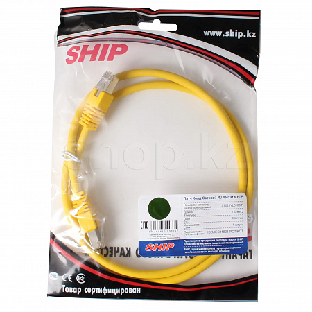 Patch cord RJ-45 6 cat SHIP, FTP, 1m, Yellow