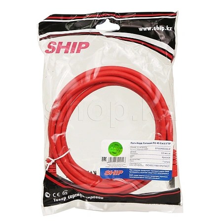 Patch cord RJ-45 6 cat SHIP FTP, 3m, OEM, Red
