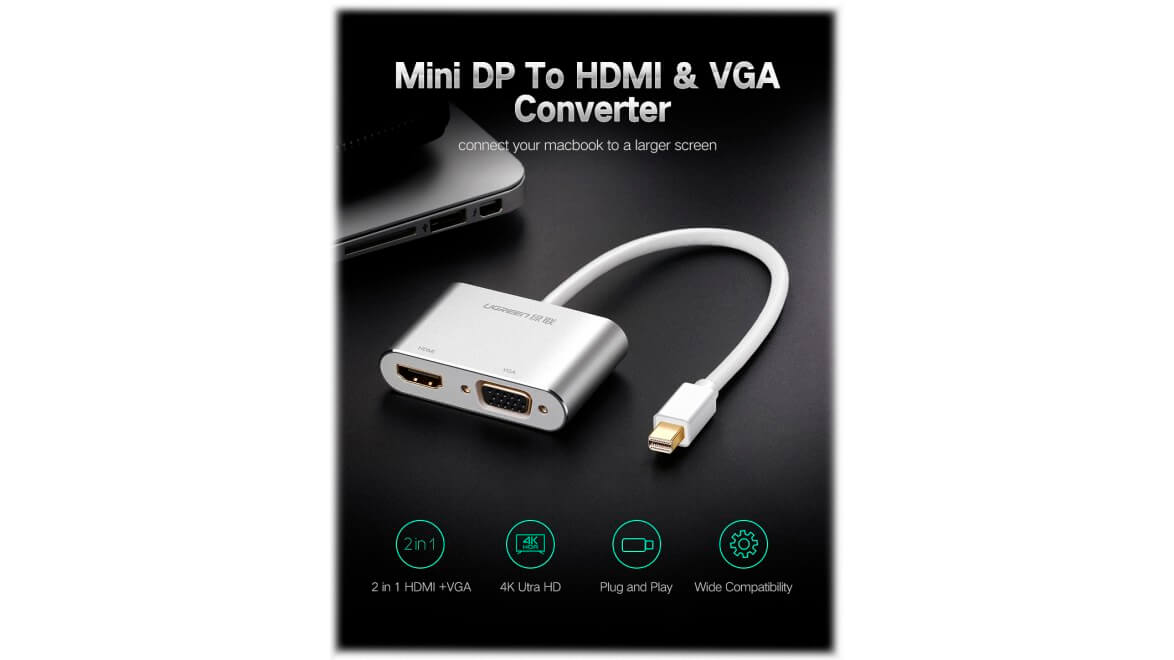Переходник Mini DisplayPort - HDMI/VGA, UGREEN 20421, Silver, BOX