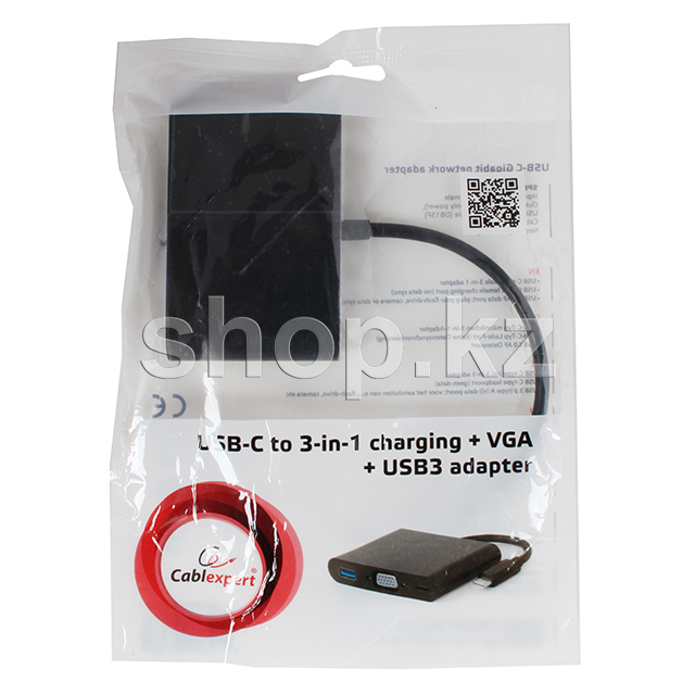 Переходник Cablexpert USB Type-C - VGA, USB черного цвета пригодится, если необходимо передать видео в высоком качестве с планшета или смартфона на большой экран телевизора, монитора, проектора.