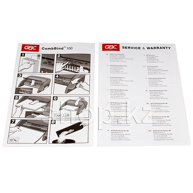 Брошюровщик CombBind 100 идеально подходит для дома и небольшого офиса, где периодически возникает потребность в переплете документов. С его помощью можно перфорировать 9 листов плотностью 80 г/кв.м и подшивать 160 листов формата А4. При этом он компактный, легкий и удобен в хранении.
