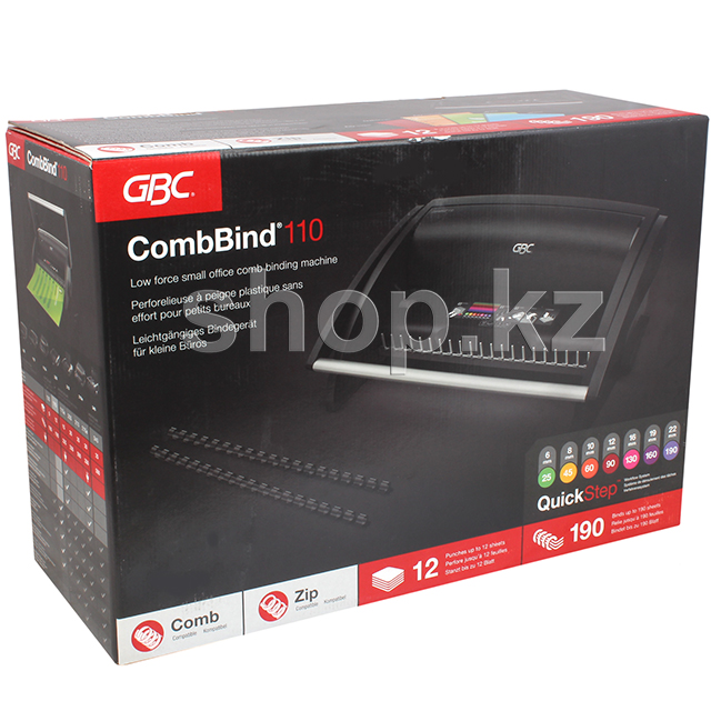 Брошюровщик CombBind 110 идеально подходит для офисов с умеренной потребностью в переплете. Пробивает 12 листов плотностью 80 г/кв.м и переплетает 190 листов. Переплетает листы размера A4 и A3 (в книжной ориентации) и оснащен ручкой во всю ширину, позволяющей пробивать отверстия плавно и без усилий. Легкий и компактный, он идеально подходит вне зависимости от места и времени применения. Удобен в хранении.