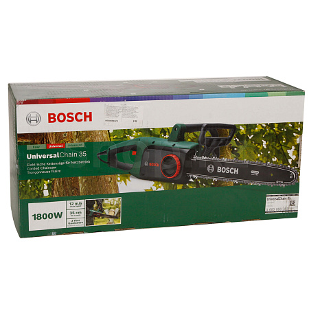 Цепная пила Bosch UniversalChain 35 обладает мощностью 1800 Вт. Скорость цепи 12 м/с обеспечивает чистый и аккуратный рез древесины. Малый вес 4,2 кг не создает излишней нагрузки на руки. Автоматическая подача масла обеспечивает обслуживание цепи не зависимо от вас и только в случае необходимости - вам необходимо только вовремя заправлять бак. Это позволяет экономить время и работать непрерывно без остановки на обслуживание.