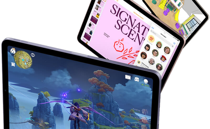 Революционный чип M1 теперь в iPad Air. 8-ядерный процессор обеспечивает производительность на 60% выше, чем у предыдущего поколения, превращая iPad Air в мощный инструмент для творчества и мобильных игр.