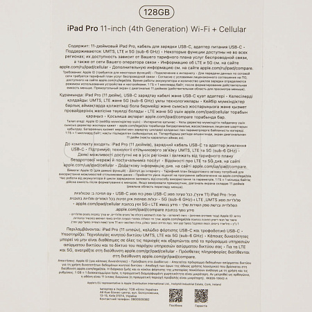 Retina Liquid 11" дисплейі бар Apple iPad Pro A2761 планшеті, 128 GB, Wi-Fi+5G, Silver (MNYD3)