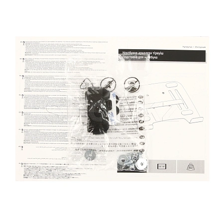 VESA 75x75 мм стандартына сәйкес келетін жұмыс үстелі мен қабырға қондырғыларының көпшілігіне сәйкес келетін ноутбук тұғыры, ол +60°көлбеу реттеуі бар. Ноутбукты қосымша қорғау үшін оның желдеткіш саңылаулары мен сырғып кетпейтін тығыздағыштары мен Velcro бауы бар.
