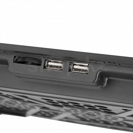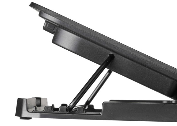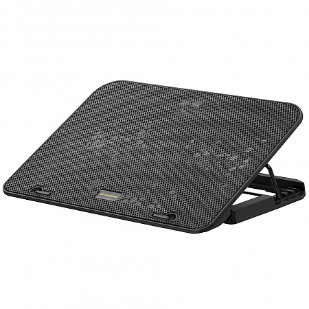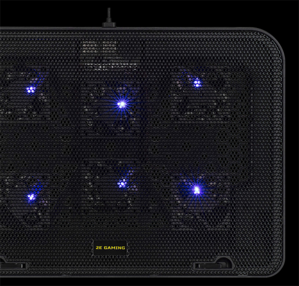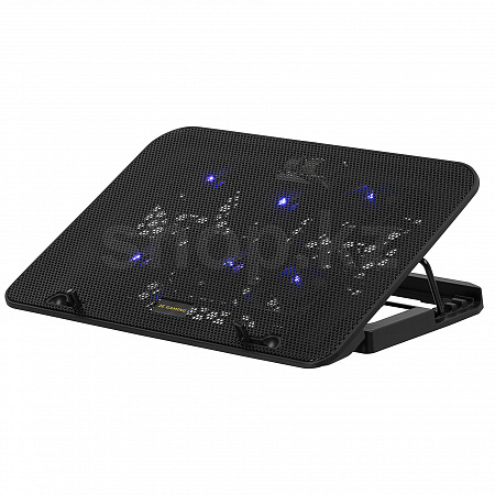 Компактный и стильный корпус из прочного пластика и металлической перфорированной поверхности дополнен шестью мощными вентиляторами с LED-подсветкой, которые обеспечивают эффективное охлаждение ноутбуков диагональю до 15,6 дюймов. Антискользящие прорезиненные ножки обеспечивают устойчивую фиксацию подставки на столе.