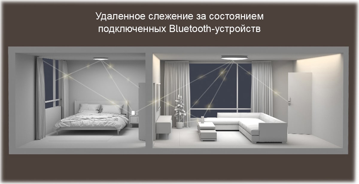 С помощью встроенного в светильник MiHome Bluetooth-шлюза можно удаленно следить за состоянием подключенных Bluetooth-устройств, а также подключать новые устройства, такие как умный замок, чтобы создавать сценарии совместной работы. Например, при открытии замка отпечатком можно включать свет и кондиционер.