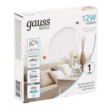 Gauss Basic Downlight отлично подойдут для организации основного освещения в жилых и бытовых помещениях, где необходимо добавить световой акцент. Отличительной особенностью даунлайтов является фронтальное расположение диодов, что влияет на световой поток.