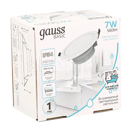 Gauss Basic Downlight отлично подойдут для организации основного освещения в жилых и бытовых помещениях, где необходимо добавить световой акцент. Отличительной особенностью даунлайтов является фронтальное расположение диодов, что влияет на световой поток.
