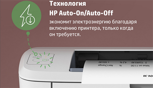 Интеллектуальная технология HP Auto-On/Auto-Off может включать принтер, когда это необходимо, и выключать его, когда устройство не используется.