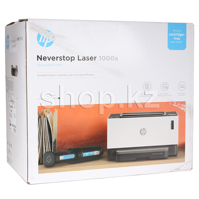 HP Neverstop Laser 1000a — с легкостью печатайте большие объемы документов на первом в мире лазерном принтере без картриджей — запас тонера для печати 5000 страниц входит в комплект поставки. Положитесь на качество и надежность HP и с легкостью пополняйте тонер, не оставляя грязных следов.