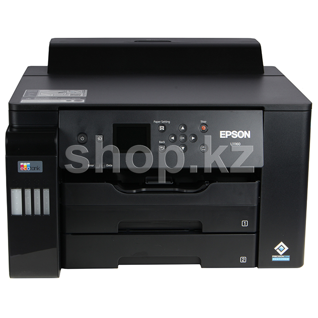 Epson L11160 — это бескартриджный принтер с возможностью печати документов формата А3+. Он специально создан для тех, кому необходимы экономичная печать документов различного формата и широкие функциональные возможности, включая работу по Wi-Fi Direct и Ethernet. В комплект поставки уже входит набор полноразмерных контейнеров с чернилами.