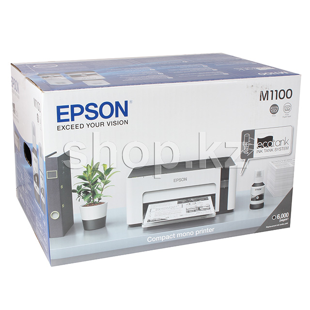 Монохромная Фабрика печати Epson М1100 — это компактный и удобный в использовании струйный принтер с большими емкостями для чернил объемом 120 мл. вместо картриджей. Благодаря своей уникальной конструкции Фабрика печати Epson M1100 позволяет печатать документы с рекордно низкой себестоимость, а за счет использования пигментных чернил отпечатки мгновенно высыхают и не размазываться при попадании воды или механическом воздействии.