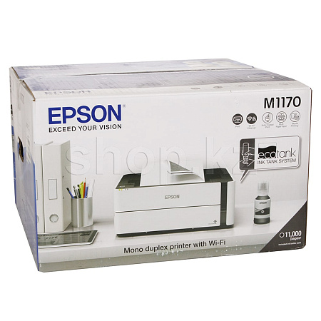 Благодаря своей уникальной конструкции Epson M1170 позволяет печатать документы с минимальным расходом чернил, а за счет использования пигментных чернил отпечатки мгновенно высыхают и не размазываться при попадании воды или механическом воздействии. Кроме того, данное устройство обладает функцией автоматической двусторонней печати, а также широкими возможностями беспроводного и проводного подключения.