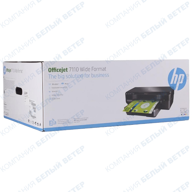 Широкоформатный принтер HP Officejet 7110, предназначен для использования на предприятиях малого и среднего бизнеса, которым необходима доступная широкоформатная печать профессионального качества до A3+, гибкость в работе с проводными/беспроводными сетями и легкая мобильная печать.