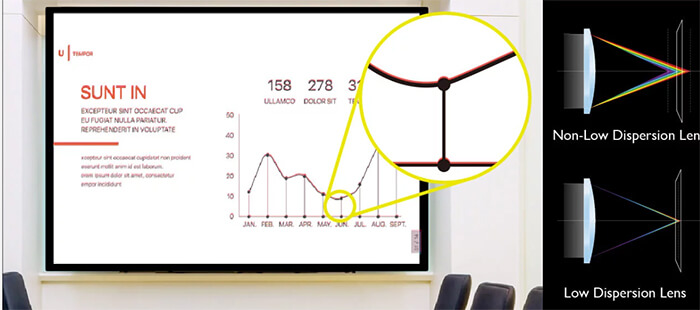 BenQ использует только высококачественные стеклянные линзы для минимизации хроматических искажений обеспечивая высокое качество изображения на долгое время.