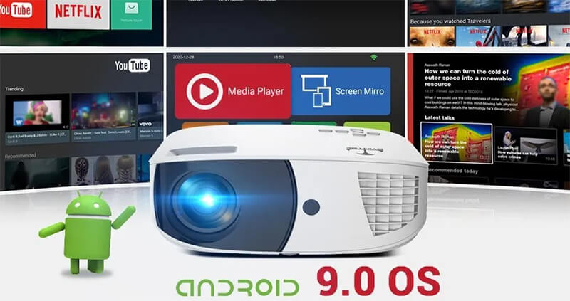 Byintek - проектор MOON K20X Smart имеет яркость лампы 400 ANSI люменов, поддерживает высокое разрешение Full HD 1080p при размере максимального рекомендованного изображения в 200 дюймов.