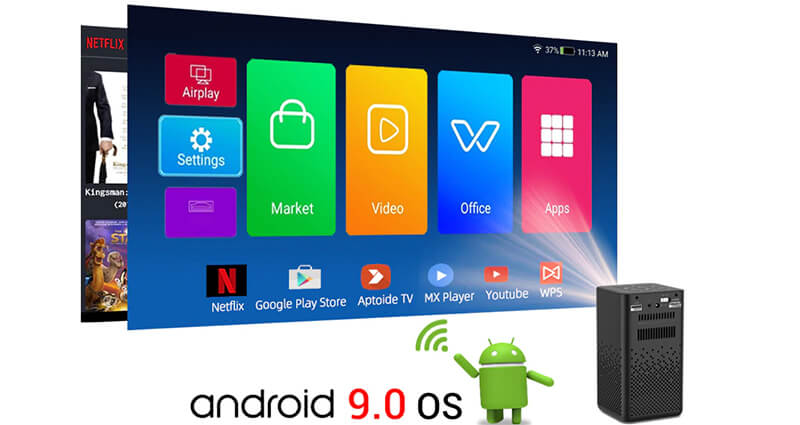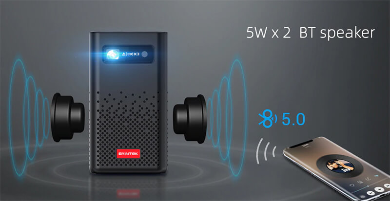 В отличии от многих похожих конкурентов немаловажной деталью стала качественная встроенная акустическая система, которая переводит Byintek P20 в категорию устройств 2 в 1. При покупке которого Вы получаете и мультимедийный проектор, и беспроводную колонку.