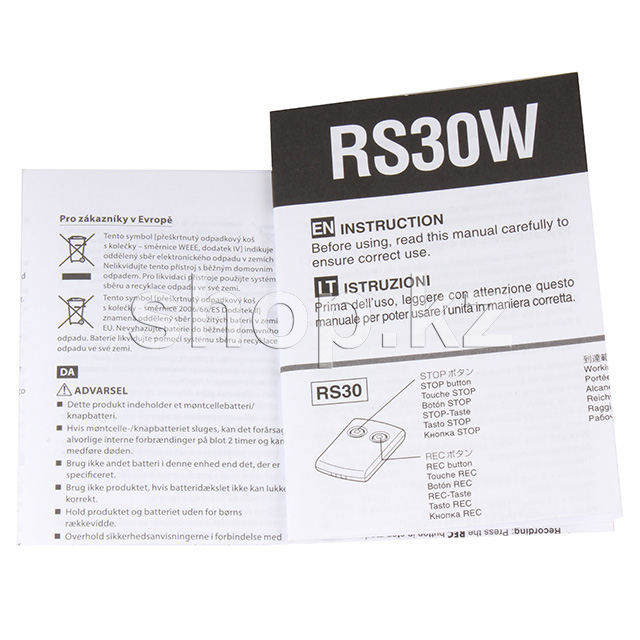 Инфракрасный пульт дистанционного управления RS30W оборудован двумя кнопками для начала и остановки записи. Также он позволяет управлять устройством под различными углами.